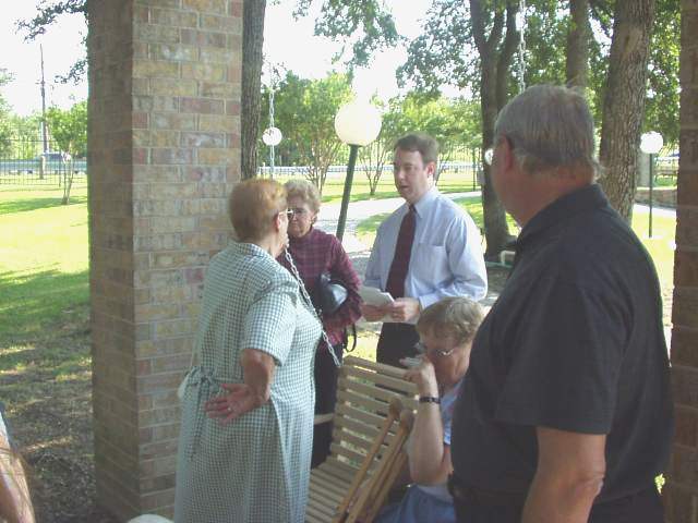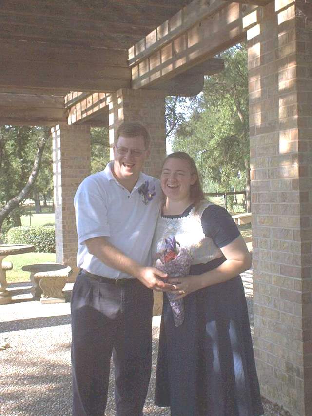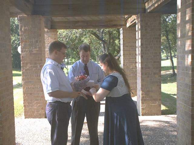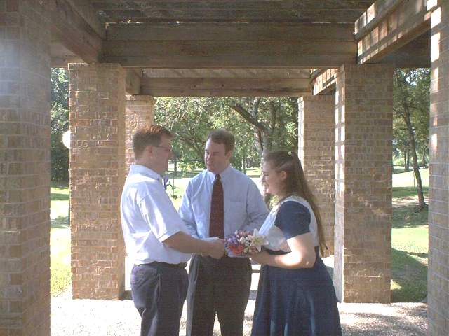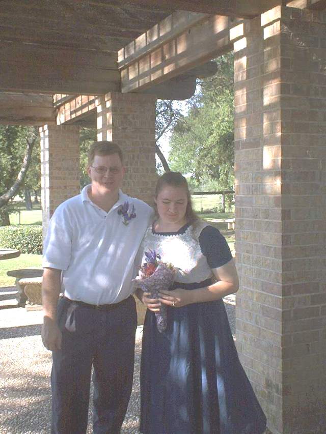 Jenny and I wed on Friday June 14th, 2002. We had a small intimate wedding with just some of our close family members and the minister present. We were married in a small park that is part of the retirement community one of Jenny's grandmothers lives in. Dan Griswold from The Reformed Church in Plano officiated our wedding. We chose him because we have been friends with him nearly as long as we have known each other. We met each other and Dan through amatuer radio.